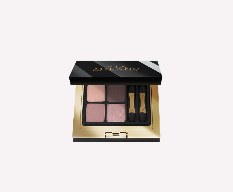 VIA MILANO Eyeshadow Palette 4 Colours — Early Sunrise. Four refined shades inspired by the warmth of the morning sun. The velvety texture glides on effortlessly, letting you create soft everyday looks or bold accents for any moment. Infused with Vitamin E, it nourishes the delicate skin of your eyelids, delivering comfort and lightness that lasts all day.
